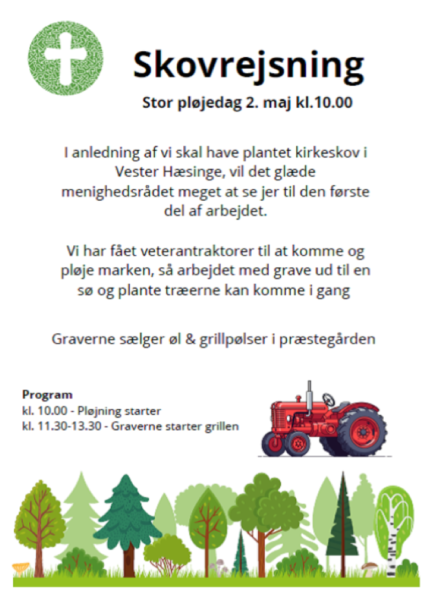 Et spændene projekt nærmere sig, d. 2. maj kl. 10:00 i Vester Hæsinge Præstegård, og dens marker, der kommer 30 – 40 veterantraktorer og pløjer marken, der med tiden, skal ende med sø, blandet skov og Bysted kaldet Vester Hæsinge Nyskov.
