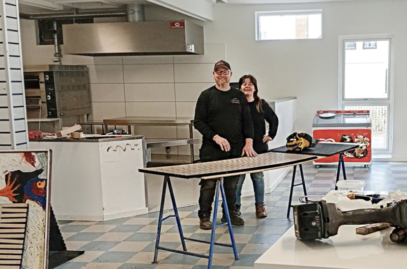 Hanne og Jesper knokler for at få grillen klar til åbning til maj. Foto: Leif Henningsen.
