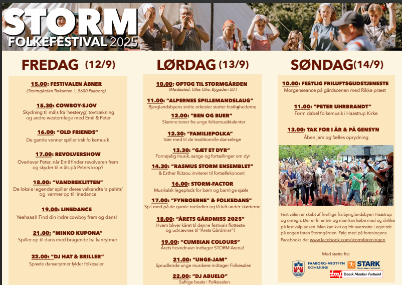 Vi inviterer til en fornøjelig folkefest på Stormgården i Haastrup den 12/9 til 14/9